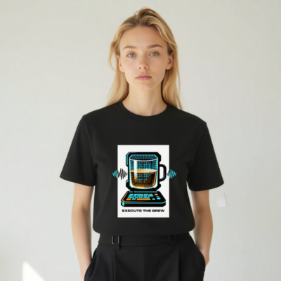Show off your coding and coffee love with this unisex organic cotton t-shirt featuring a vibrant ‘Execute the Brew’ design: a retro-futuristic laptop with a mug as its screen, displaying binary code and a frothy brew. Crafted from certified organic cotton for comfort and sustainability. Perfect for developers, baristas, and tech enthusiasts who blend logic with warmth. Eco-friendly, stylish, and ready to run.
