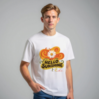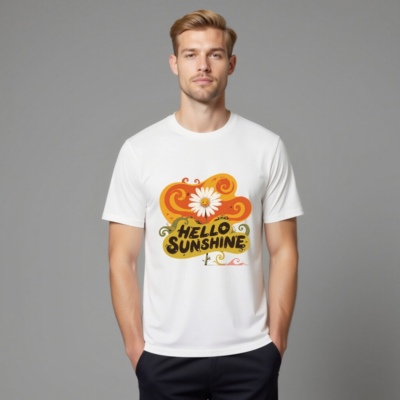 Soft, eco-friendly unisex t-shirt made from organic cotton. Features a cheerful ‘Hello Sunshine’ design with a smiling daisy and vibrant swirls—perfect for uplifting your everyday style. Comfortable, sustainable, and proudly made for all genders.