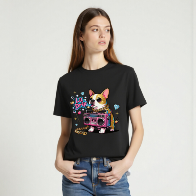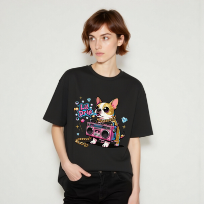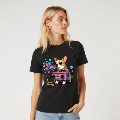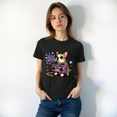 Show off your street style with this unisex organic cotton t-shirt featuring a vibrant ‘Lil Drip’ dog graphic—complete with pink boombox, gold chain, and sparkling diamonds. Soft, eco-friendly cotton for comfort and sustainability. Perfect for casual wear, gifts, or expressing bold personality. Designed for all genders, machine washable, and made with responsibly sourced organic cotton.