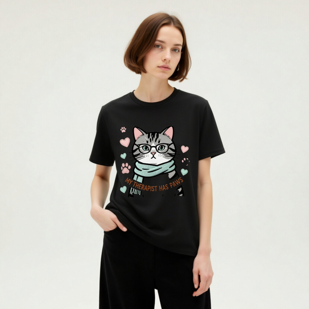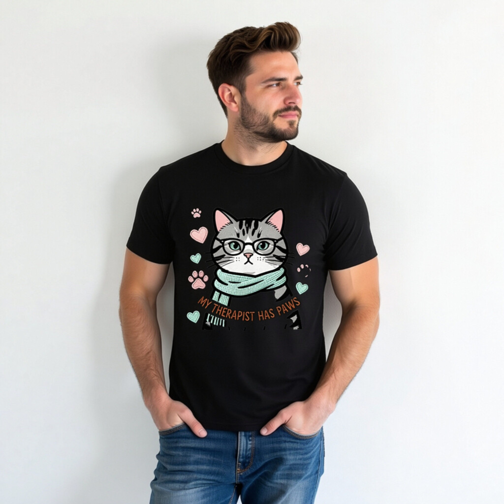 Unisex Organic Cotton T-Shirt | My Therapist Has Paws Cat Graphic Tee