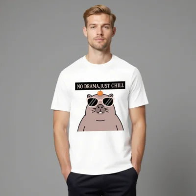 Unisex Organic Cotton T-Shirt – ‘No Drama, Just Chill’ Capybara Graphic Tee