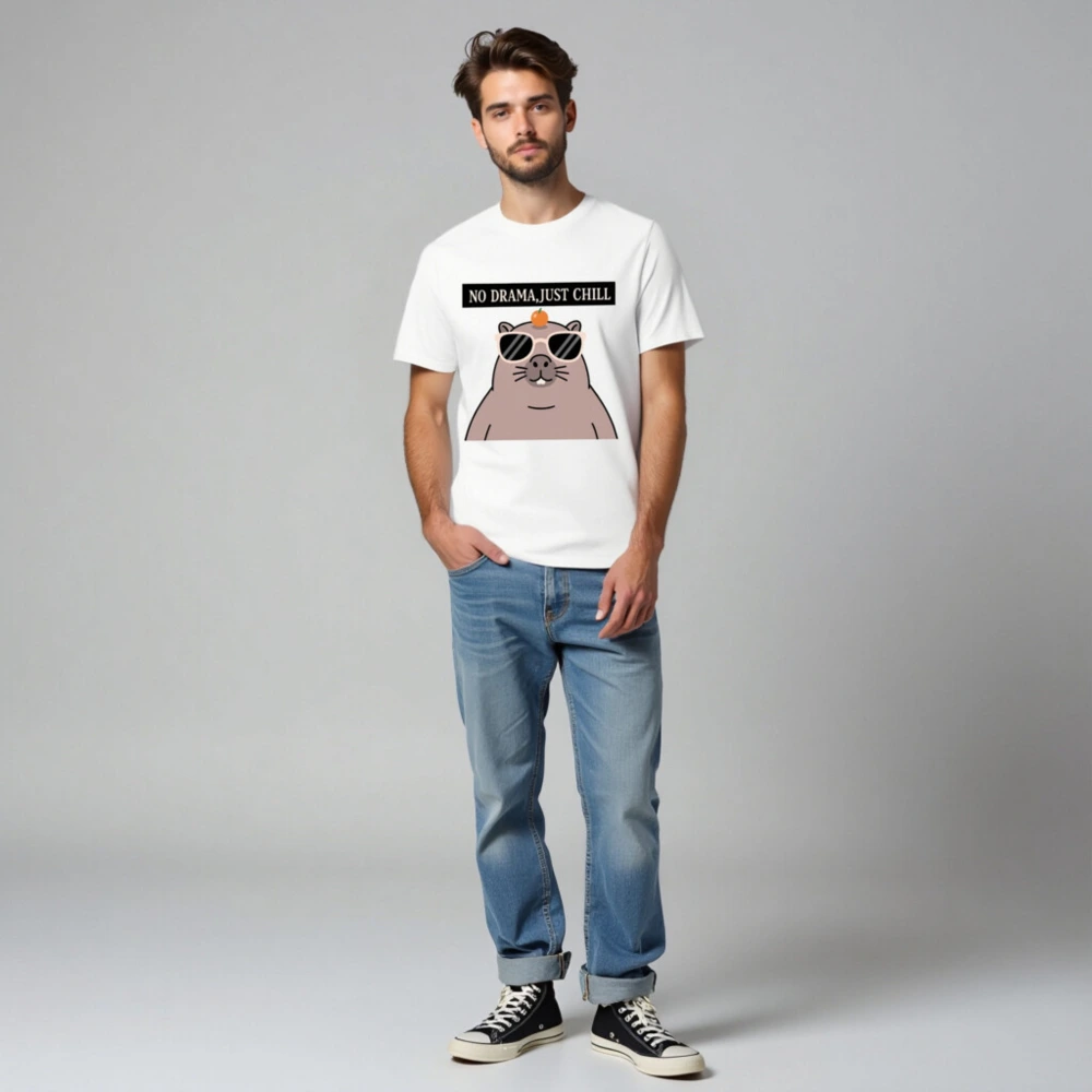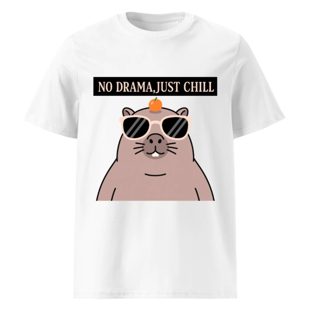 Unisex Organic Cotton T-Shirt – ‘No Drama, Just Chill’ Capybara Graphic Tee