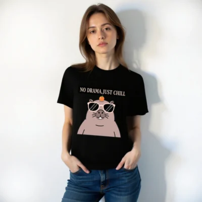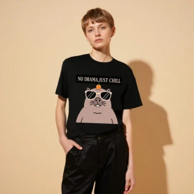 Chill in style with this unisex organic cotton t-shirt featuring a playful guinea pig wearing sunglasses and balancing an orange on its head. The bold ‘NO DRAMA, JUST CHILL’ slogan adds humor and positivity. Made from certified organic cotton for comfort and sustainability. Perfect for casual wear, gifts, or self-expression—soft, eco-friendly, and confidently laid-back.
