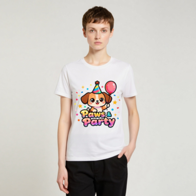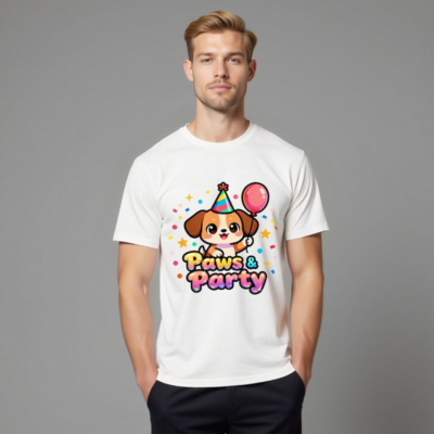 Celebrate in style with this unisex organic cotton t-shirt featuring a cheerful puppy in a party hat holding a balloon, surrounded by confetti and stars. Perfect for birthdays, pet lovers, or any festive occasion. Soft, breathable, and eco-friendly—made with 100% certified organic cotton. Designed for comfort and joy, this fun graphic tee is suitable for all ages and genders.