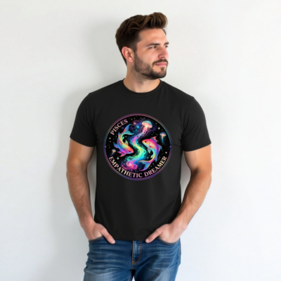Wear the cosmic spirit of Pisces with this unisex organic cotton t-shirt featuring a vibrant, rainbow-hued design of two koi fish and jellyfish swirling in a starry nebula. Perfect for empathetic dreamers who embrace intuition and creativity. Soft, sustainable, and ethically made—ideal for everyday comfort and meaningful self-expression.