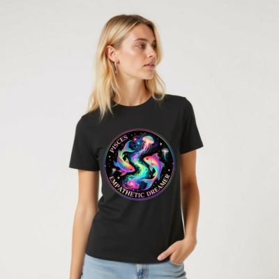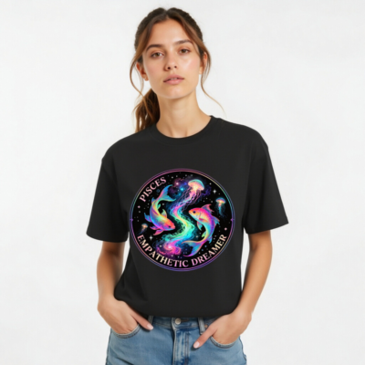Unisex Organic Cotton T-Shirt – Pisces Empathetic Dreamer Fish & Jellyfish Design