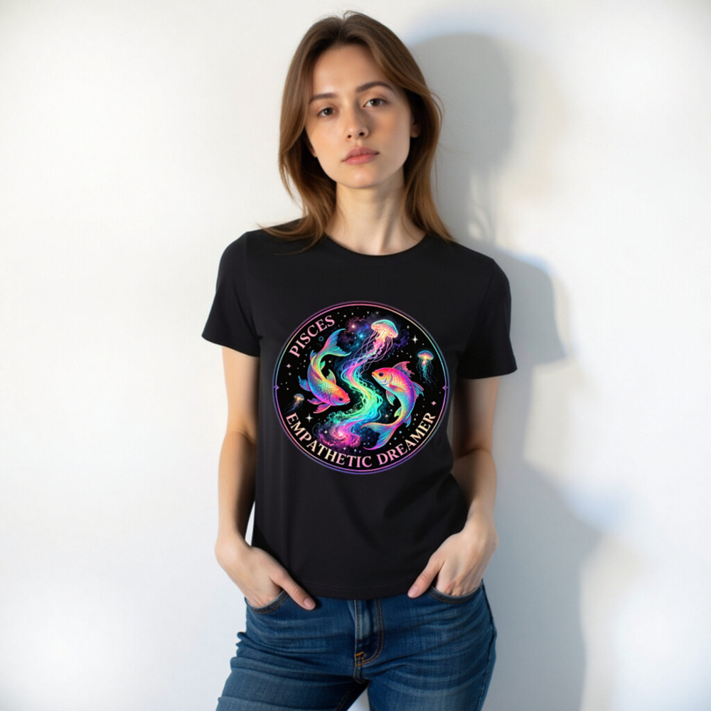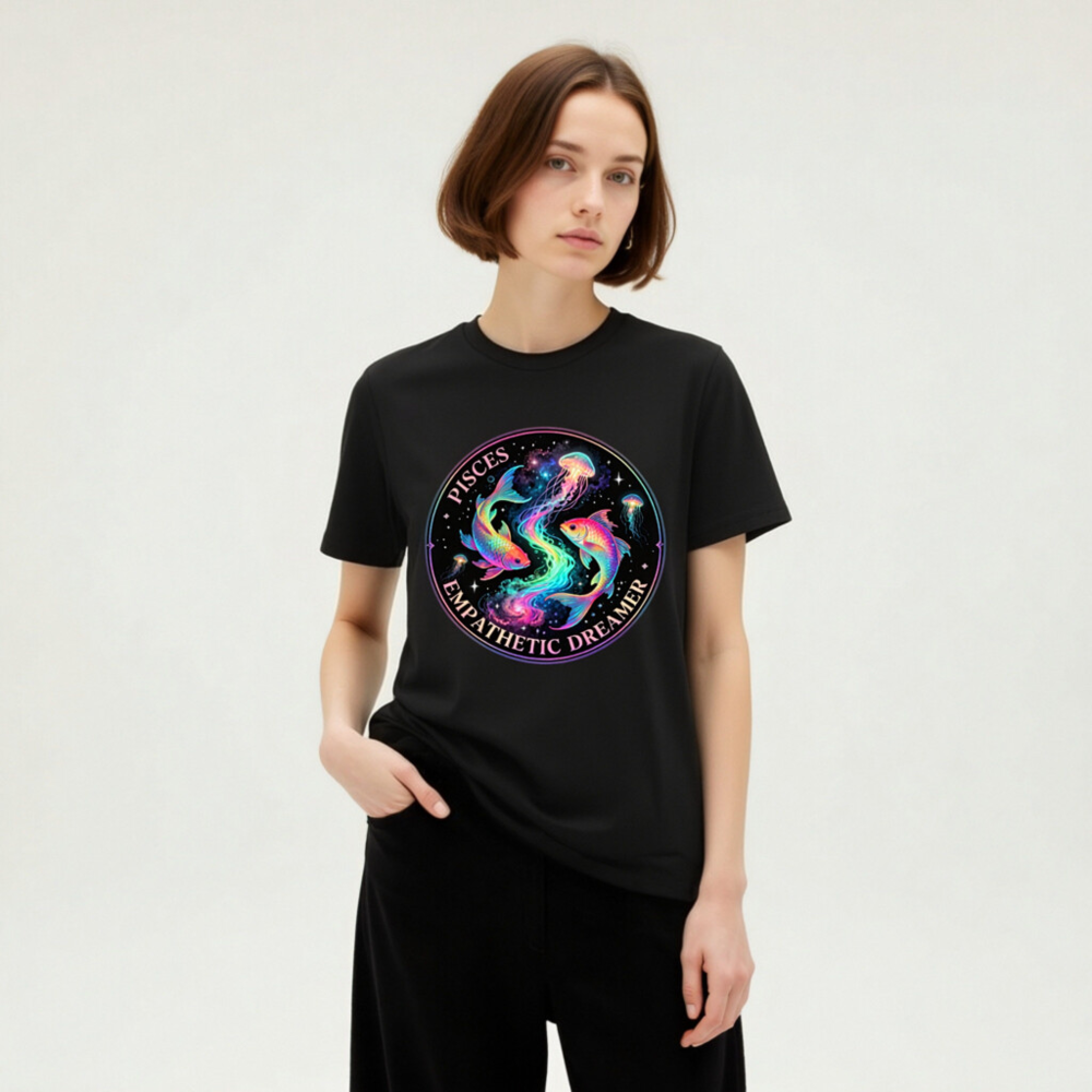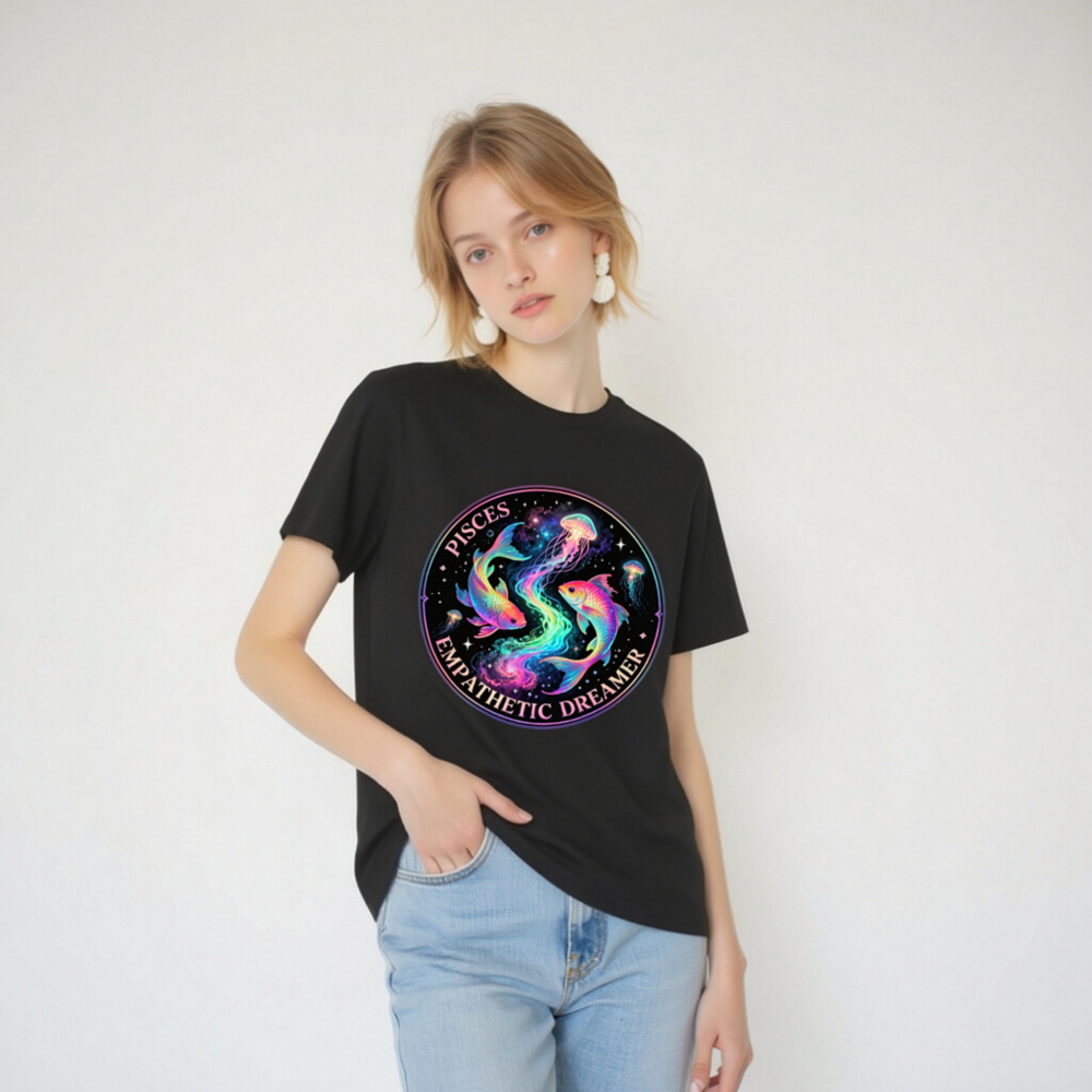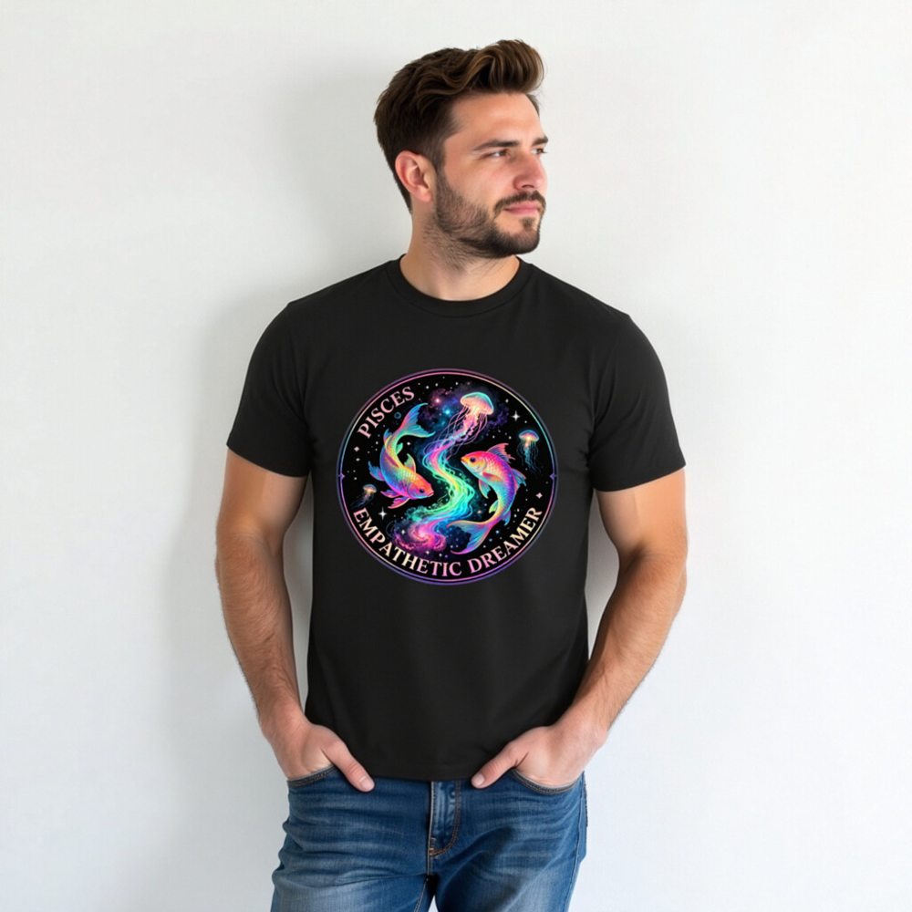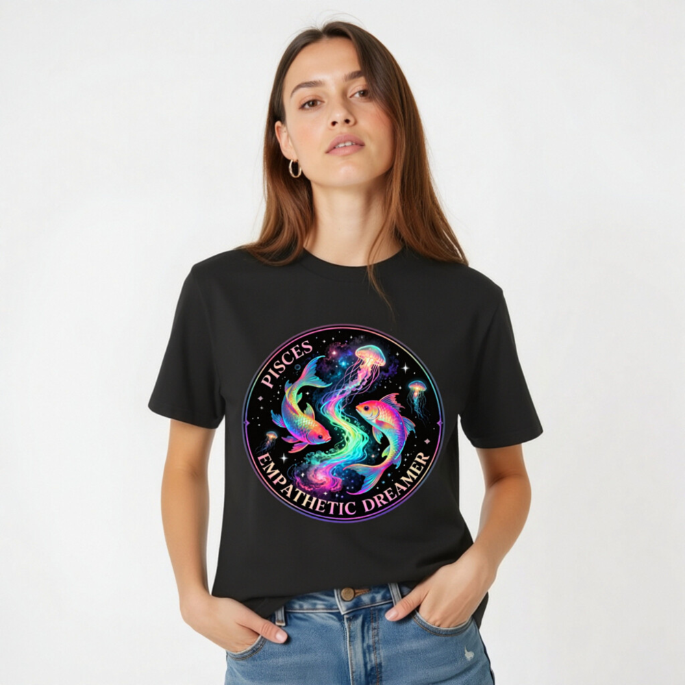 Unisex Organic Cotton T-Shirt – Pisces Empathetic Dreamer Fish & Jellyfish Design