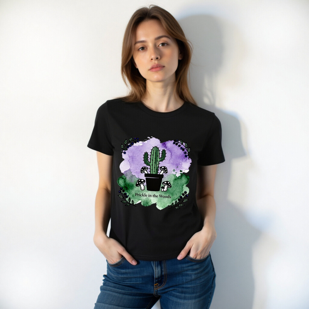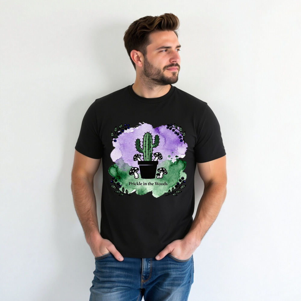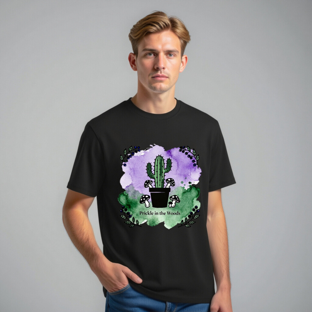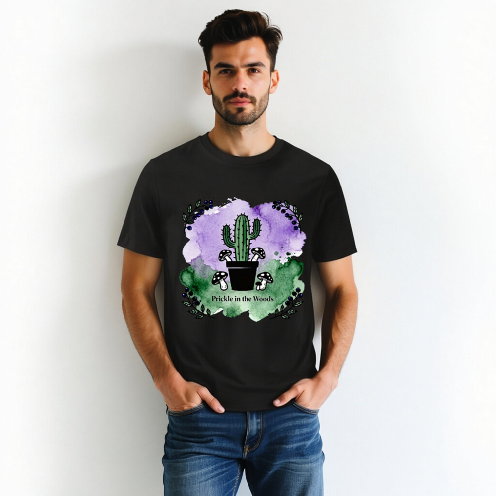 Unisex Organic Cotton T-Shirt | Prickle in the Woods Cactus & Mushrooms Design