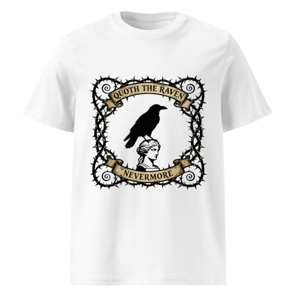 Unisex Organic Cotton T-Shirt | Quoth the Raven Nevermore – Gothic Raven & Statue Design