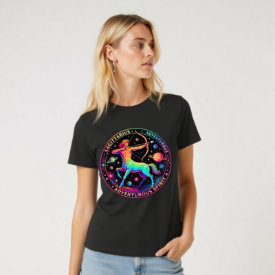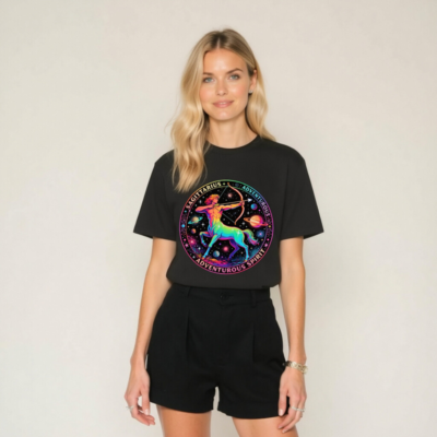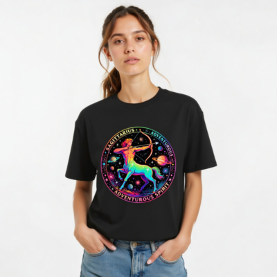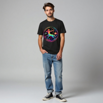 Celebrate your zodiac spirit with this unisex organic cotton t-shirt featuring a vibrant, rainbow-hued Sagittarius archer set against a cosmic backdrop of planets and stars. Designed for comfort and style, it embodies the adventurous energy of the Archer sign. Made from certified organic cotton — soft, sustainable, and skin-friendly. Perfect for astrology lovers, travelers, and dreamers who embrace curiosity and exploration.