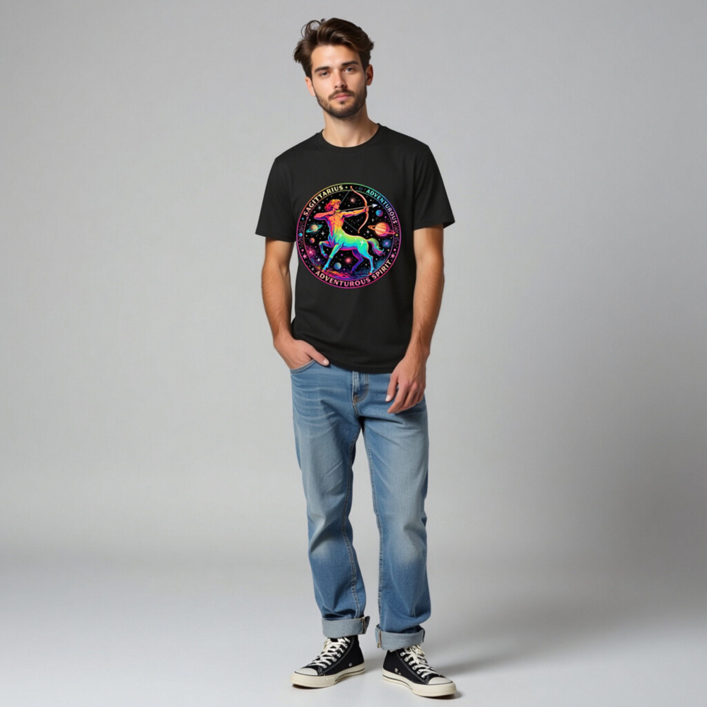 Unisex Organic Cotton T-Shirt – Sagittarius Astrology Design, Adventurous Spirit