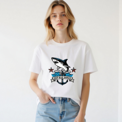 Unisex Organic Cotton T-Shirt | Shark & Anchor ‘Deep Blue Danger’ Design