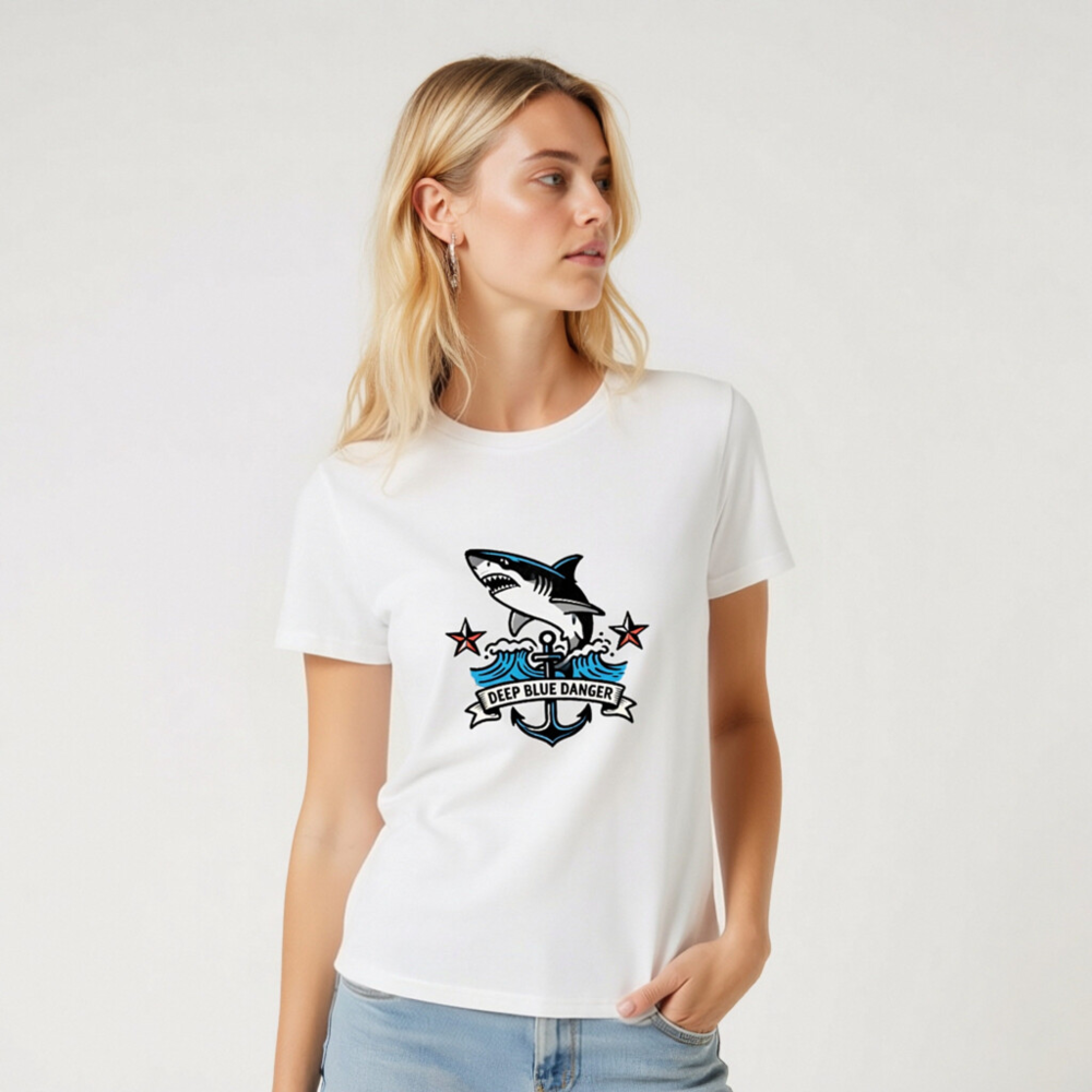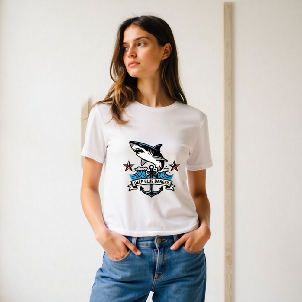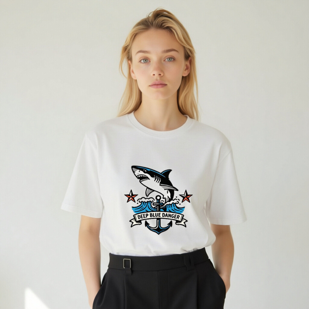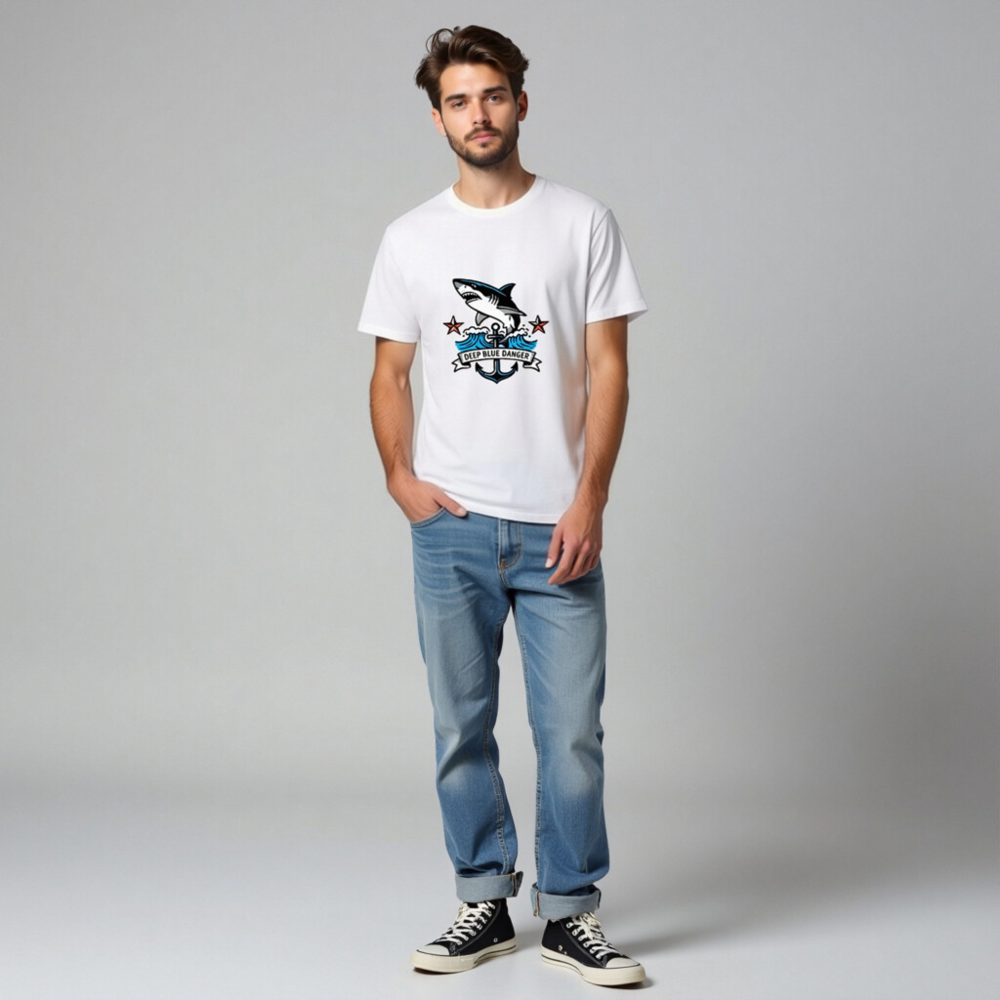 Unisex Organic Cotton T-Shirt | Shark & Anchor ‘Deep Blue Danger’ Design