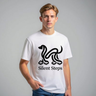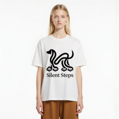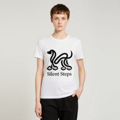 Wear the elegant ‘Silent Steps’ dog design on this unisex organic cotton t-shirt — soft, breathable, and made with responsibly sourced GOTS-certified fabric. The minimalist black line-art dog motif pairs perfectly with the bold ‘Silent Steps’ text for a stylish, meaningful statement. Designed for everyday comfort, this gender-neutral tee supports sustainable fashion without compromising on quality or fit.
