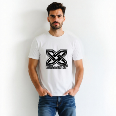Premium unisex organic cotton t-shirt featuring bold ‘Unbreakable Grit’ X logo with metallic gradient effect. Soft, breathable, and eco-conscious—made for everyday wear. 100% certified organic cotton (GOTS), machine washable, sustainable fashion for men and women. Strong design meets ethical sourcing.