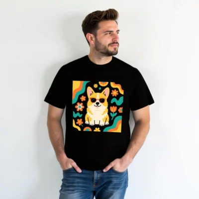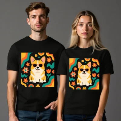 Show off your love for pets and retro vibes with this unisex organic cotton t-shirt featuring a cheerful corgi in sunglasses surrounded by vibrant floral and wave patterns. Made from certified organic cotton for softness, breathability, and eco-conscious wear. Perfect for casual days, gifts, or expressing your playful personality. Sustainable style that’s gentle on skin and the planet.