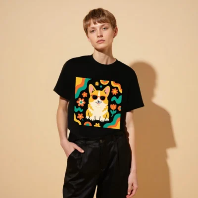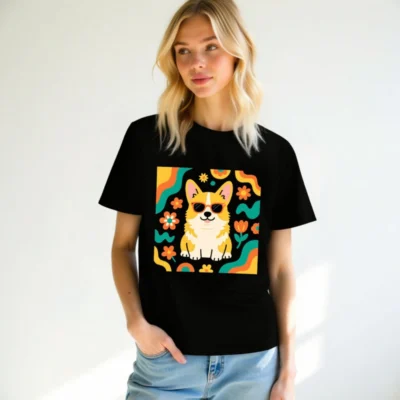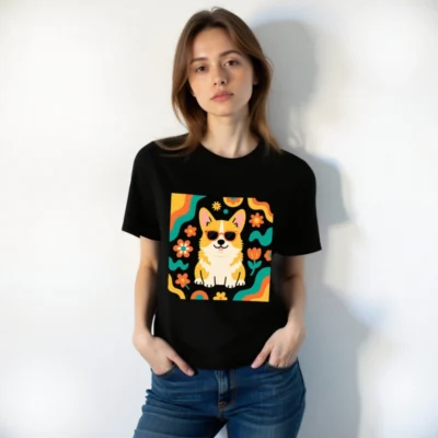 Unisex Organic Cotton T-Shirt with Corgi & Floral Design – Eco-Friendly, Comfortable