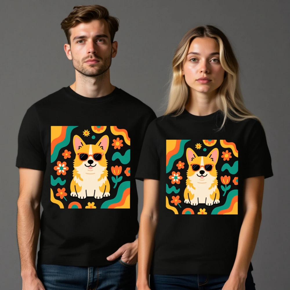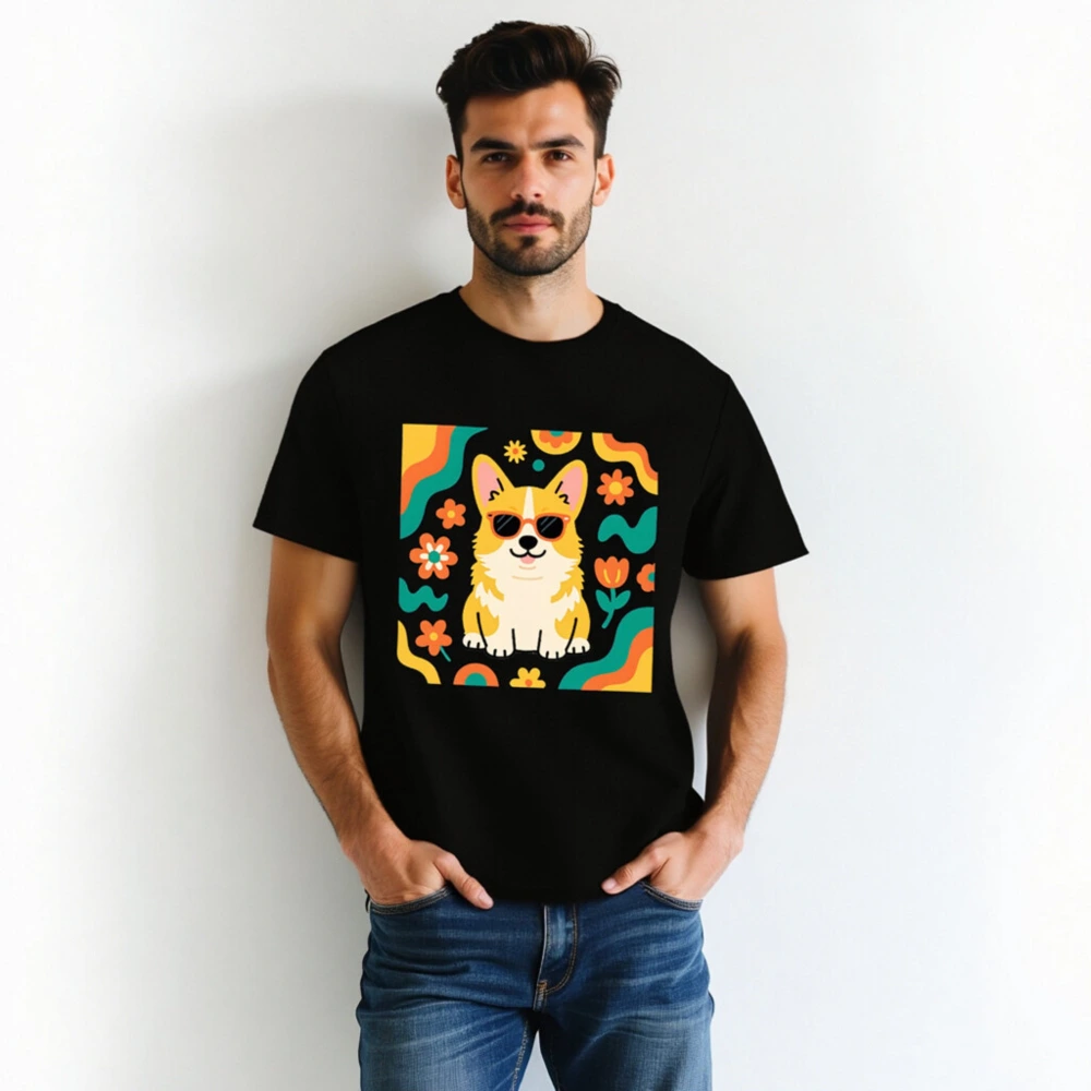 Unisex Organic Cotton T-Shirt with Corgi & Floral Design – Eco-Friendly, Comfortable