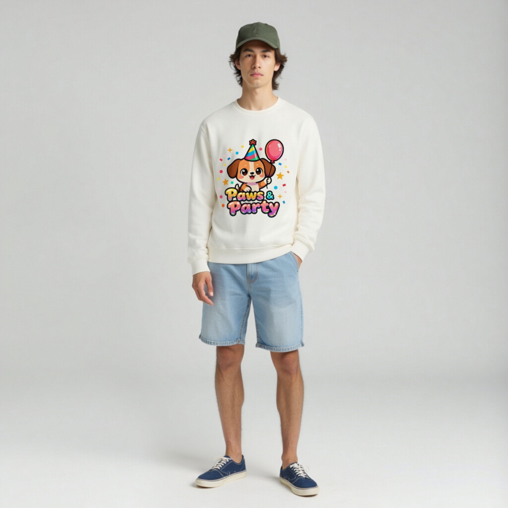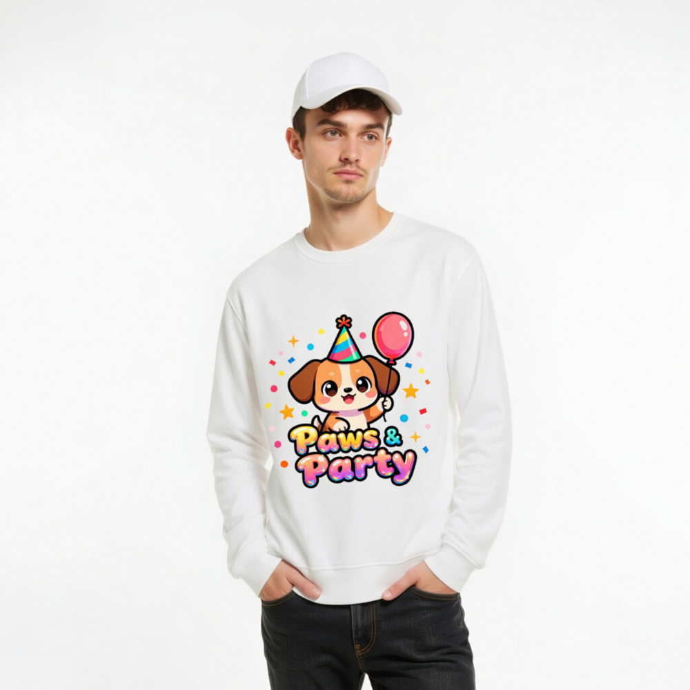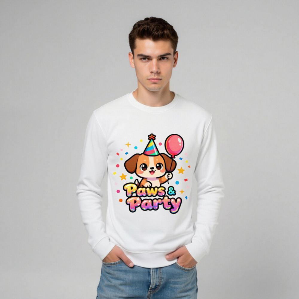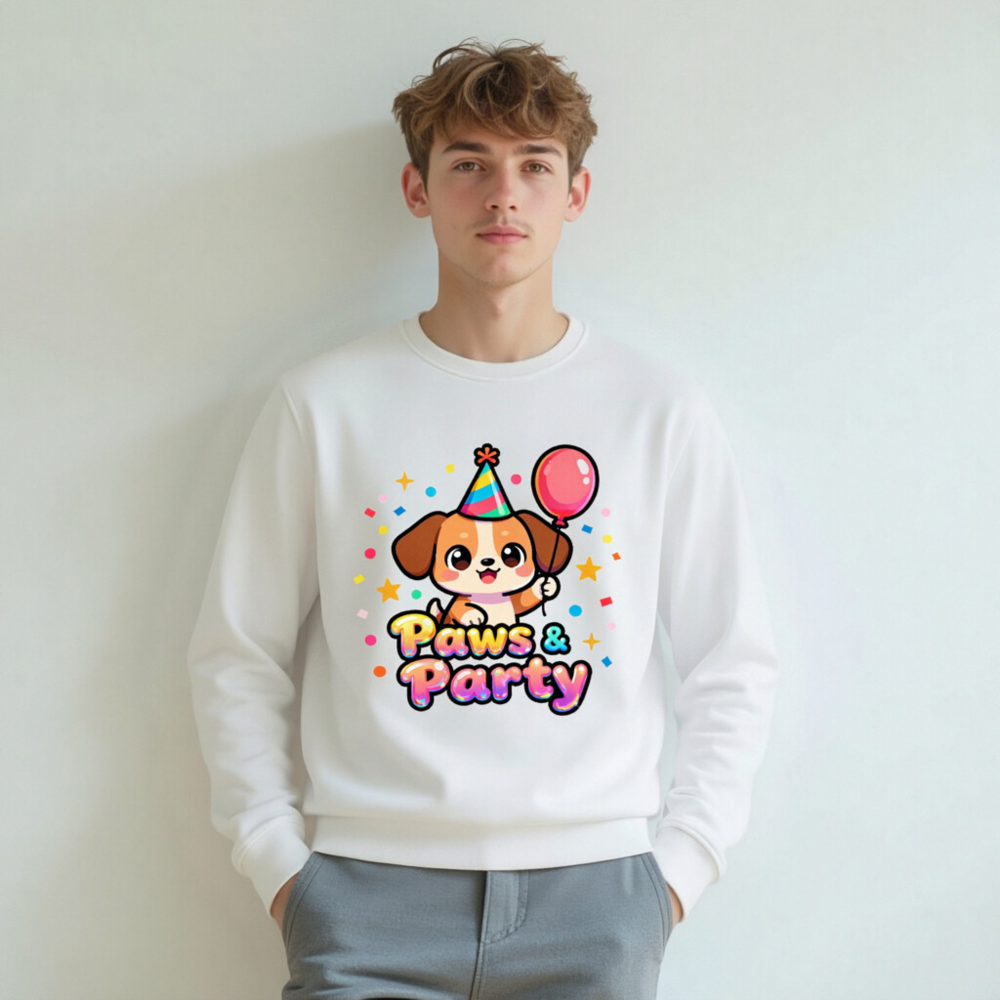 Unisex Organic Paws & Party Dog Sweatshirt – Eco-Friendly Birthday Fun
