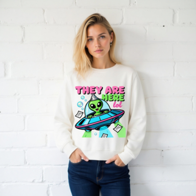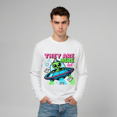 Unisex Organic Sweatshirt – Alien UFO Party Design, Eco-Friendly & Comfortable
