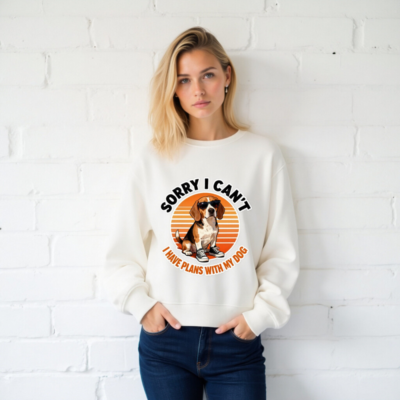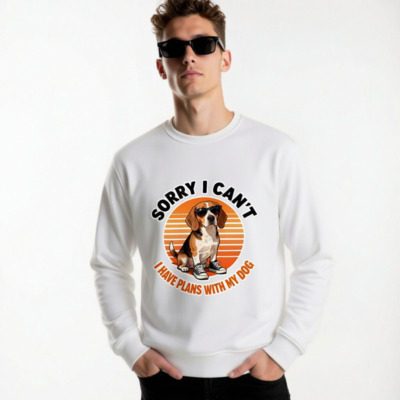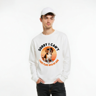 Wear your love for dogs in style with this unisex organic sweatshirt. Featuring a retro sunset design of a beagle in sunglasses and sneakers, paired with the playful quote ‘Sorry I Can’t, I Have Plans With My Dog.’ Soft, eco-friendly cotton blend—comfortable, sustainable, and perfect for dog lovers. Ideal for casual wear or gifting to pet enthusiasts.