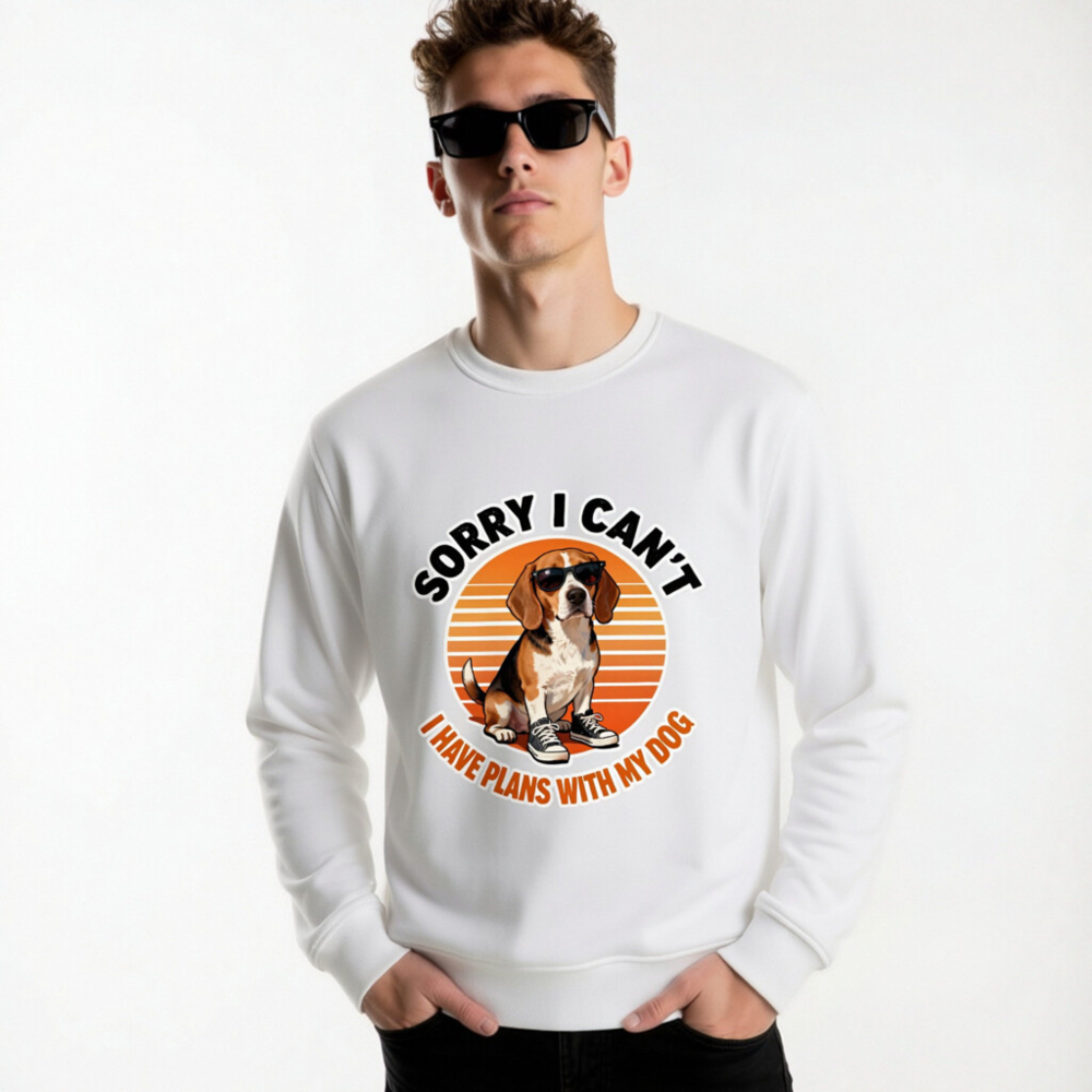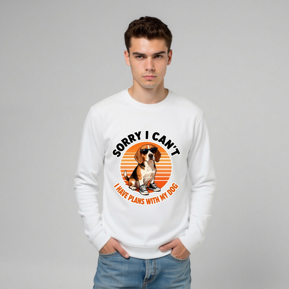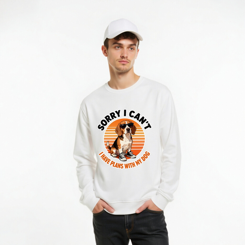 Unisex Organic Sweatshirt | Beagle with Sunglasses & Sneakers – ‘Sorry I Can’t, I Have Plans With My Dog’ Vintage Design