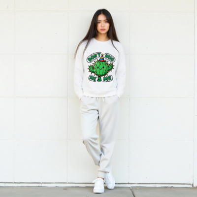 Adorable unisex organic sweatshirt featuring a kawaii cactus wearing a party hat with the playful phrase ‘DON’T HUG ME’ — perfect for humor lovers. Made from certified organic cotton (verified by GOTS), soft, sustainable, and machine-washable. Ideal for casual wear, gifts, or self-expression. Eco-friendly fashion that’s both fun and responsible.