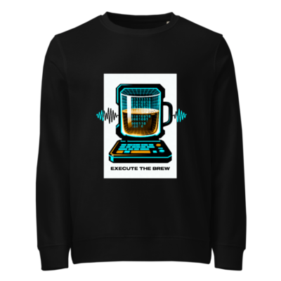 Wear your love for coding and coffee with this unisex organic sweatshirt featuring a vibrant ‘Execute the Brew’ design—a retro-futuristic laptop with a coffee mug as the screen, overlaid with binary code and waveform accents. Made from certified organic cotton (verified by GOTS), it’s soft, sustainable, and perfect for developers, designers, and caffeine enthusiasts. The bold graphic and witty slogan deliver a tech-savvy vibe that stands out in any casual setting.