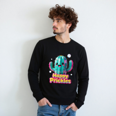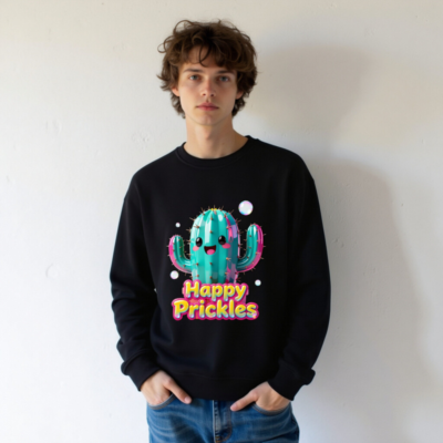 Unisex Organic Sweatshirt | Happy Prickles Cactus Design – Eco-Friendly & Comfortable