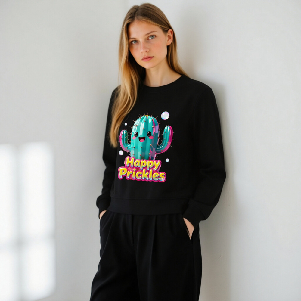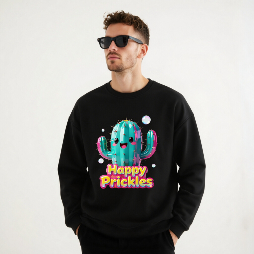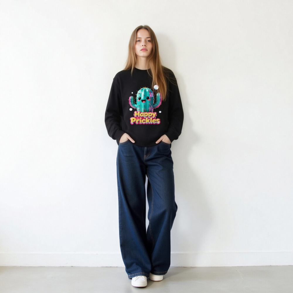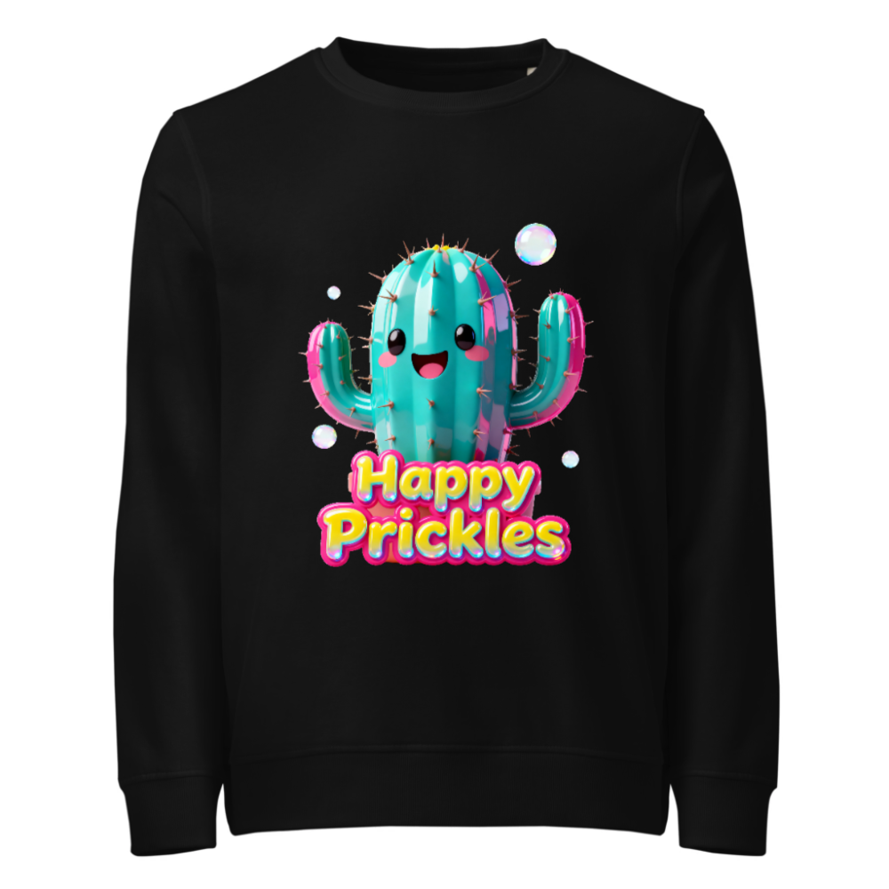 Unisex Organic Sweatshirt | Happy Prickles Cactus Design – Eco-Friendly & Comfortable