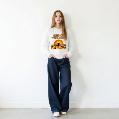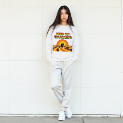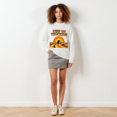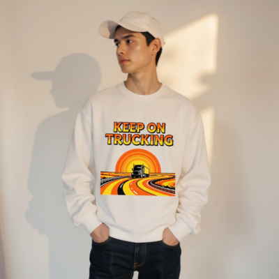 Wear the ‘Keep on Trucking’ vintage-style truck road design on this unisex organic sweatshirt. Made with 100% certified organic cotton, it features a retro sunset highway graphic and comfortable, eco-friendly construction. Ideal for truck lovers and road trip enthusiasts seeking sustainable fashion. Soft, durable, and proudly unisex.