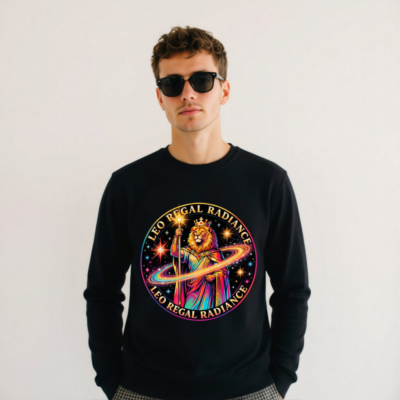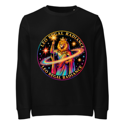Wear the regal power of Leo—this unisex organic sweatshirt features a vibrant, cosmic lion king design with crown and scepter, encircled by ‘Leo Regal Radiance’ text. Crafted for comfort and sustainability, it’s made from certified organic cotton (verified by GOTS standard). Ideal for astrology lovers, zodiac fans, or anyone embracing bold, celestial style. Soft, eco-friendly, and proudly unisex.