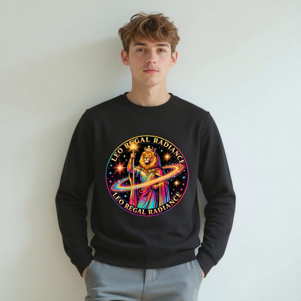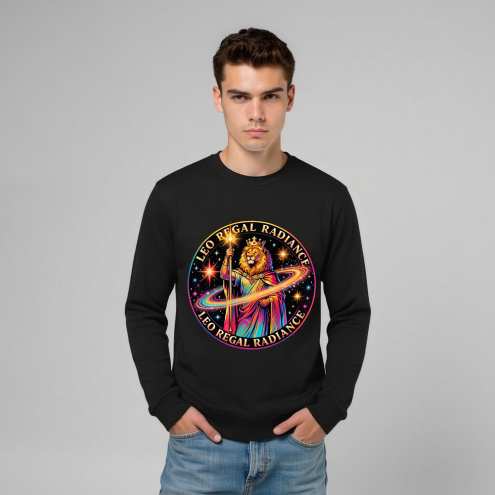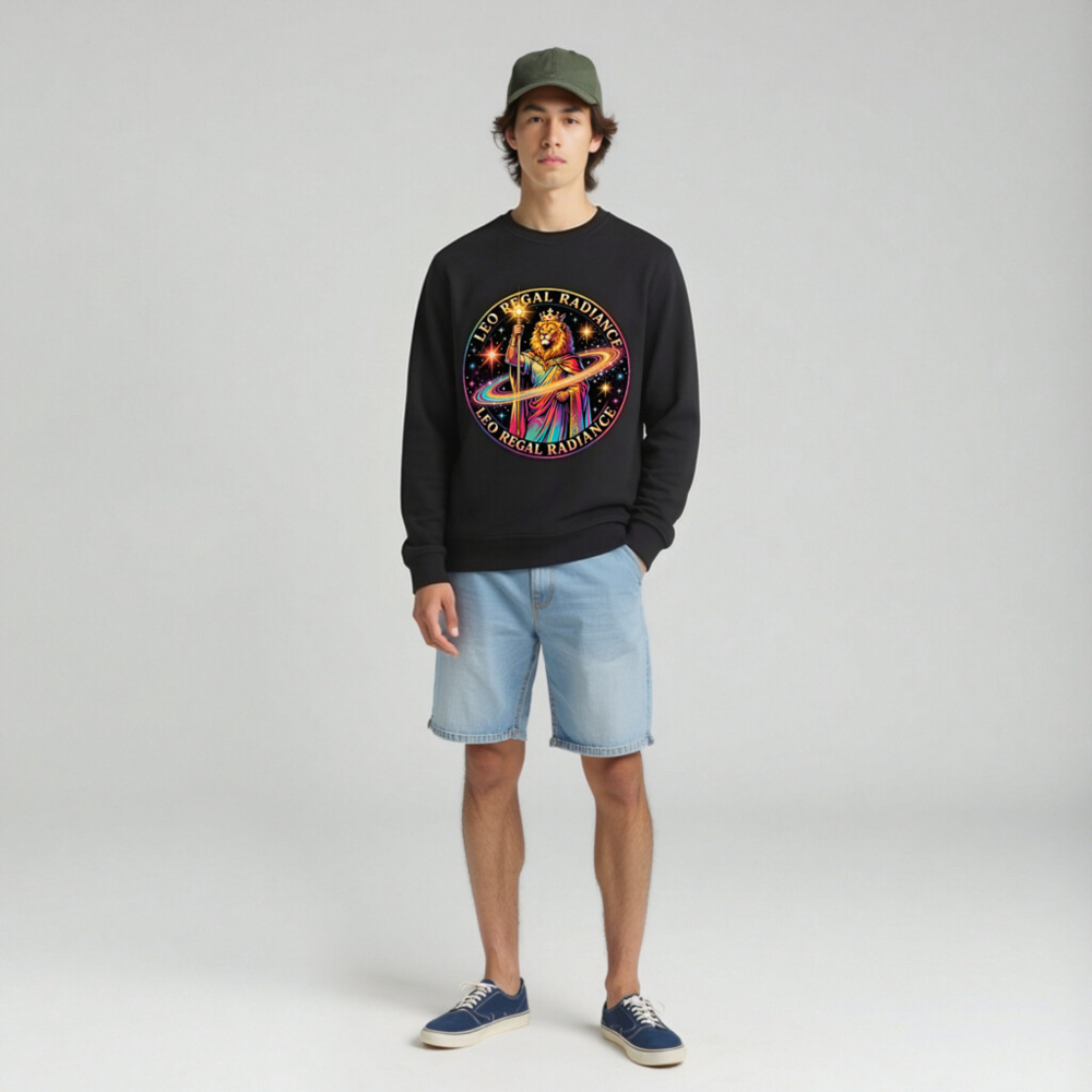 Wear the regal power of Leo—this unisex organic sweatshirt features a vibrant, cosmic lion king design with crown and scepter, encircled by ‘Leo Regal Radiance’ text. Crafted for comfort and sustainability, it’s made from certified organic cotton (verified by GOTS standard). Ideal for astrology lovers, zodiac fans, or anyone embracing bold, celestial style. Soft, eco-friendly, and proudly unisex.