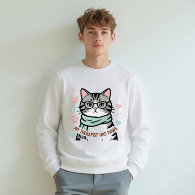 Unisex Organic Sweatshirt | My Therapist Has Paws Cat Graphic – Soft & Sustainable