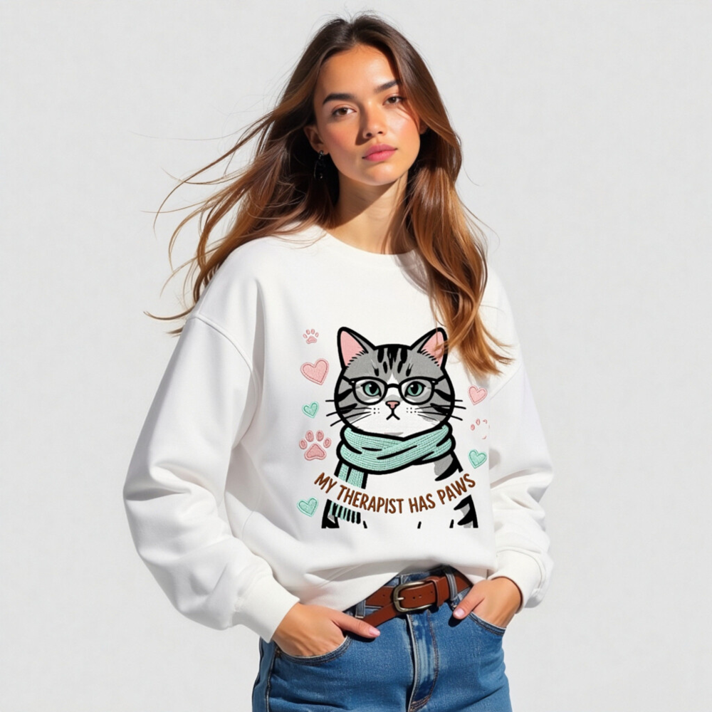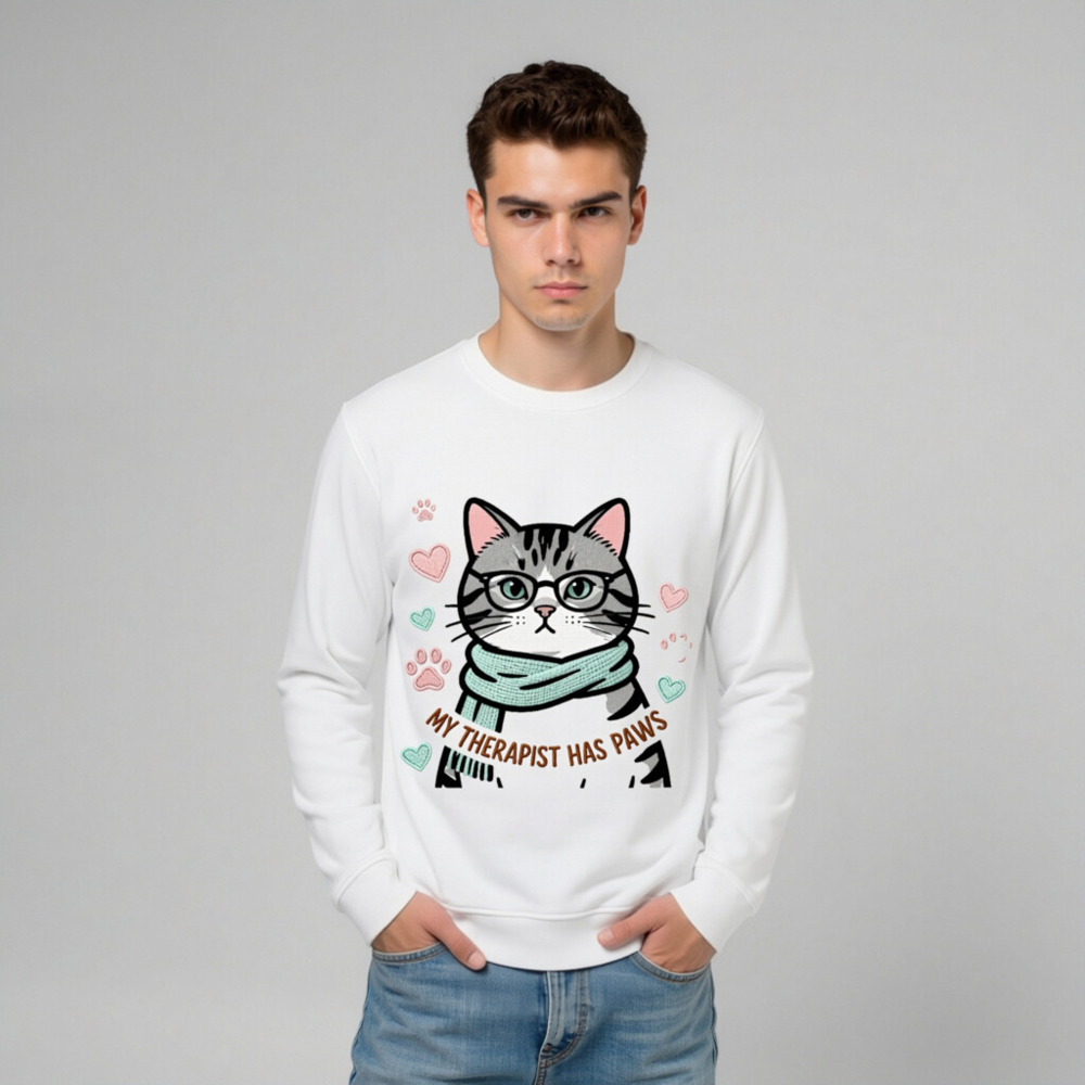 Unisex Organic Sweatshirt | My Therapist Has Paws Cat Graphic – Soft & Sustainable