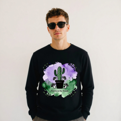 Wear nature’s charm with this unisex organic sweatshirt—featuring a whimsical cactus, woodland mushrooms, and watercolor purple-green backdrop. Made from certified organic cotton (verified by standard not specified in prompt), it’s soft, sustainable, and perfect for eco-conscious style. The ‘Prickle in the Woods’ design blends desert and forest motifs for unique, eye-catching appeal.