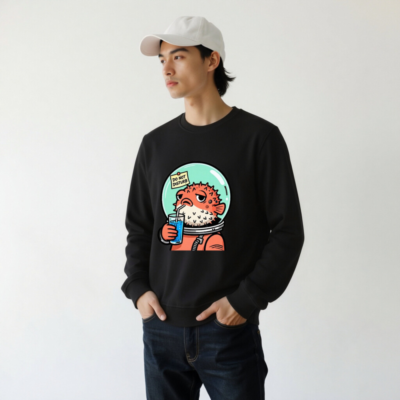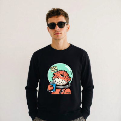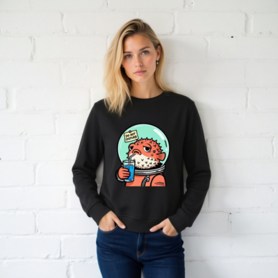 Wear this unisex organic sweatshirt featuring a charming pufferfish in an astronaut suit sipping blue juice with a ‘Do Not Disturb’ sign—perfect for space lovers and quirky fashion. Made from certified organic cotton, it’s soft, sustainable, and designed for comfort. Ideal for casual wear or gifting. Eco-friendly, ethical, and stylish.