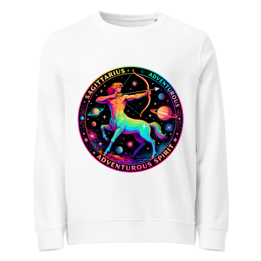 Unisex Organic Sweatshirt – Rainbow Sagittarius Astrology Design, Adventurous Spirit
