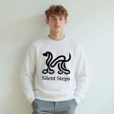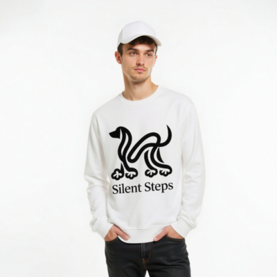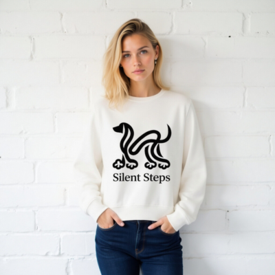 Eco-friendly unisex organic sweatshirt featuring a minimalist black ‘Silent Steps’ dog logo. Made with certified organic cotton, this comfortable, sustainable layer is ideal for everyday wear. The clean design pairs effortlessly with casual or smart-casual outfits. Soft, breathable, and ethically produced — for conscious style seekers.