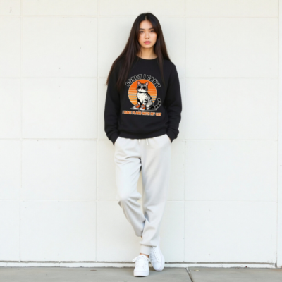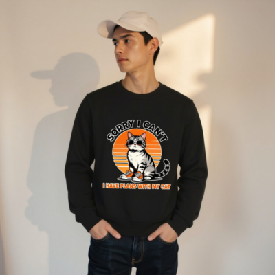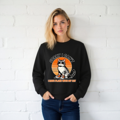 Unisex Organic Sweatshirt – ‘Sorry I Can’t, I Have Plans With My Cat’ Vintage Cat Design