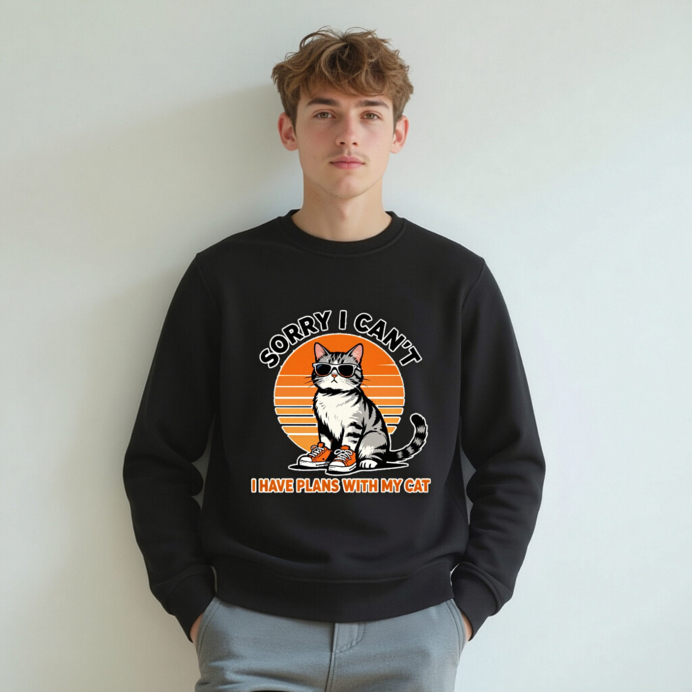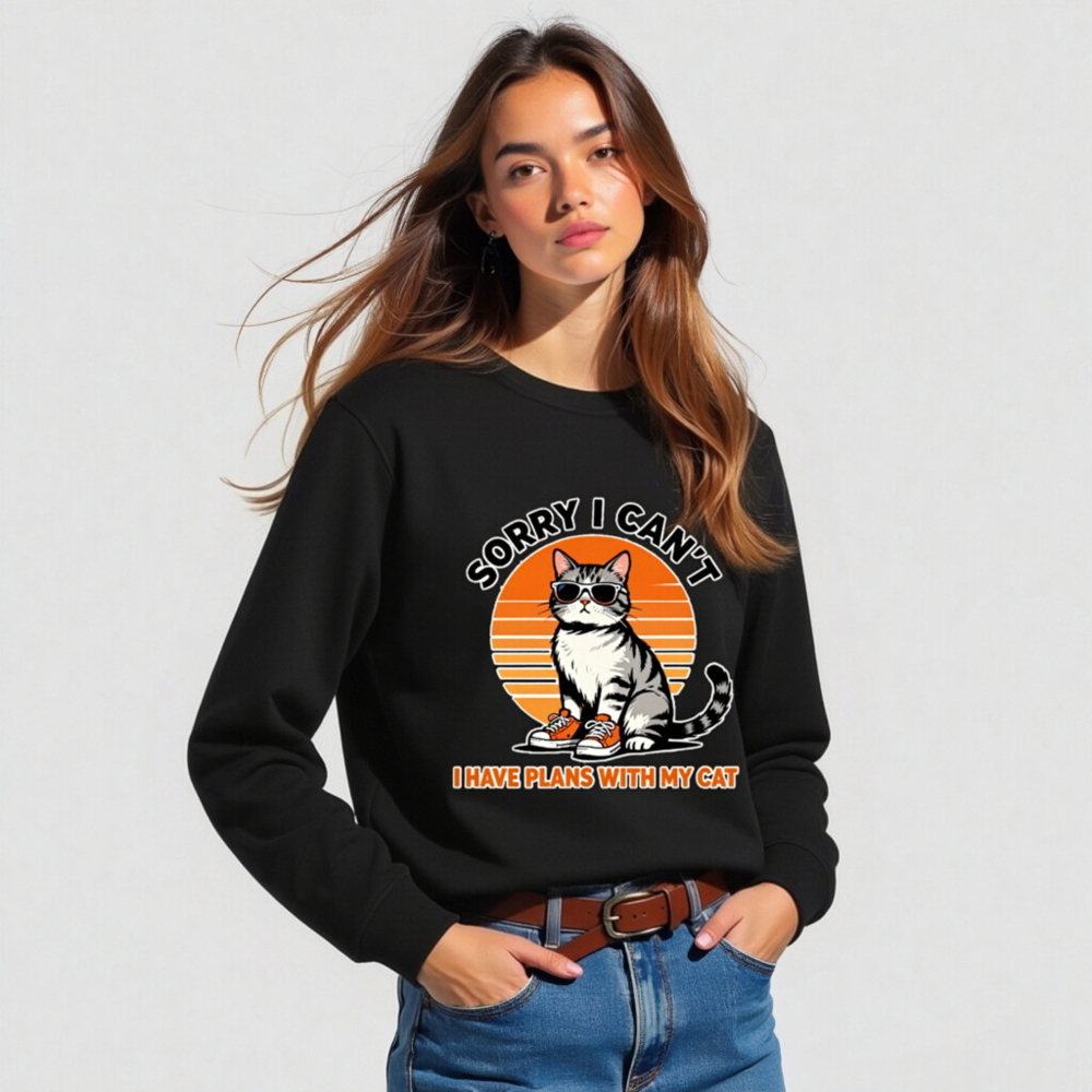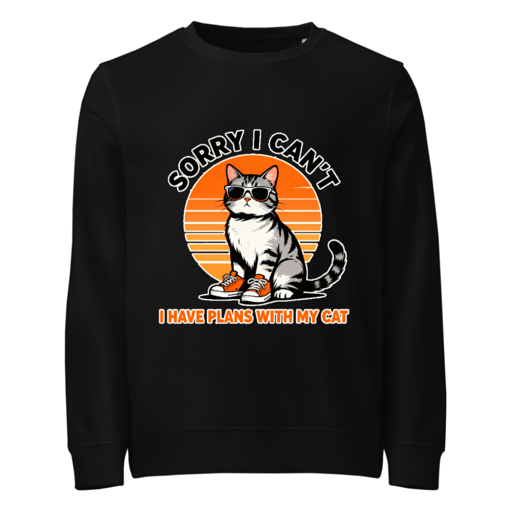 Unisex Organic Sweatshirt – ‘Sorry I Can’t, I Have Plans With My Cat’ Vintage Cat Design