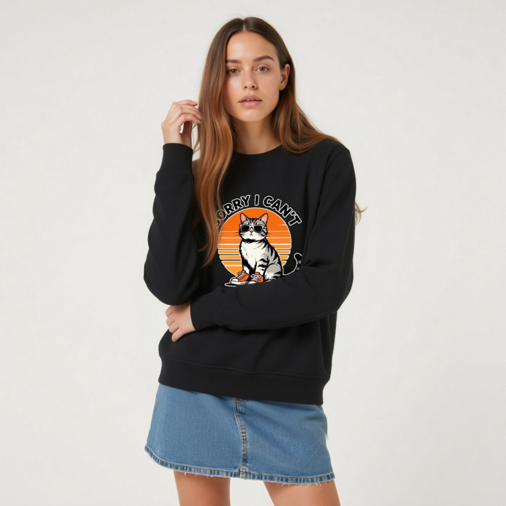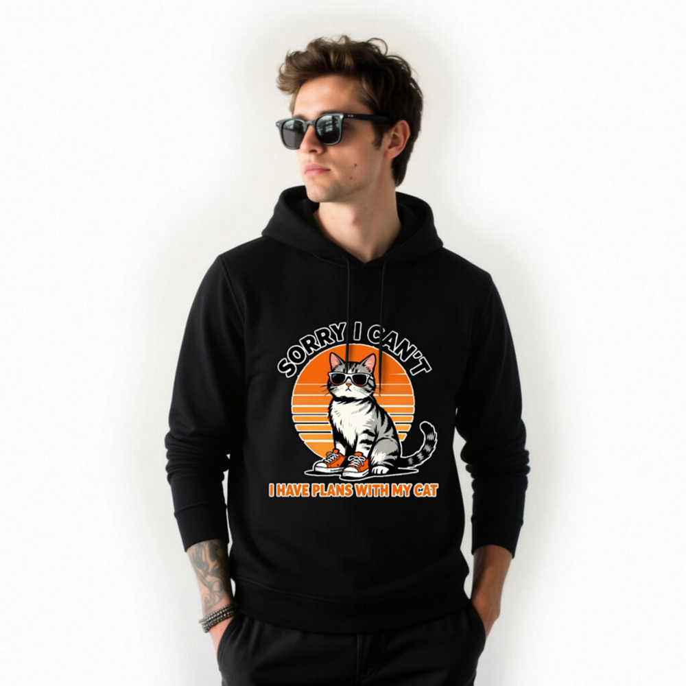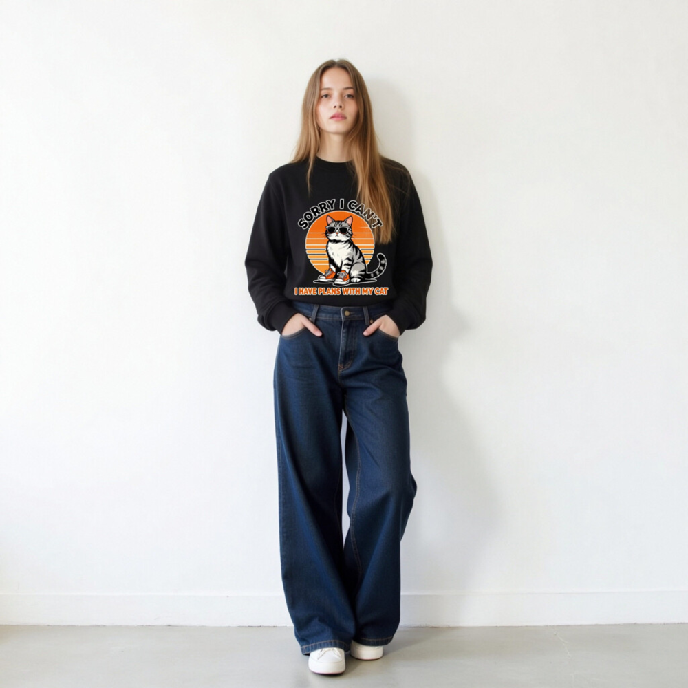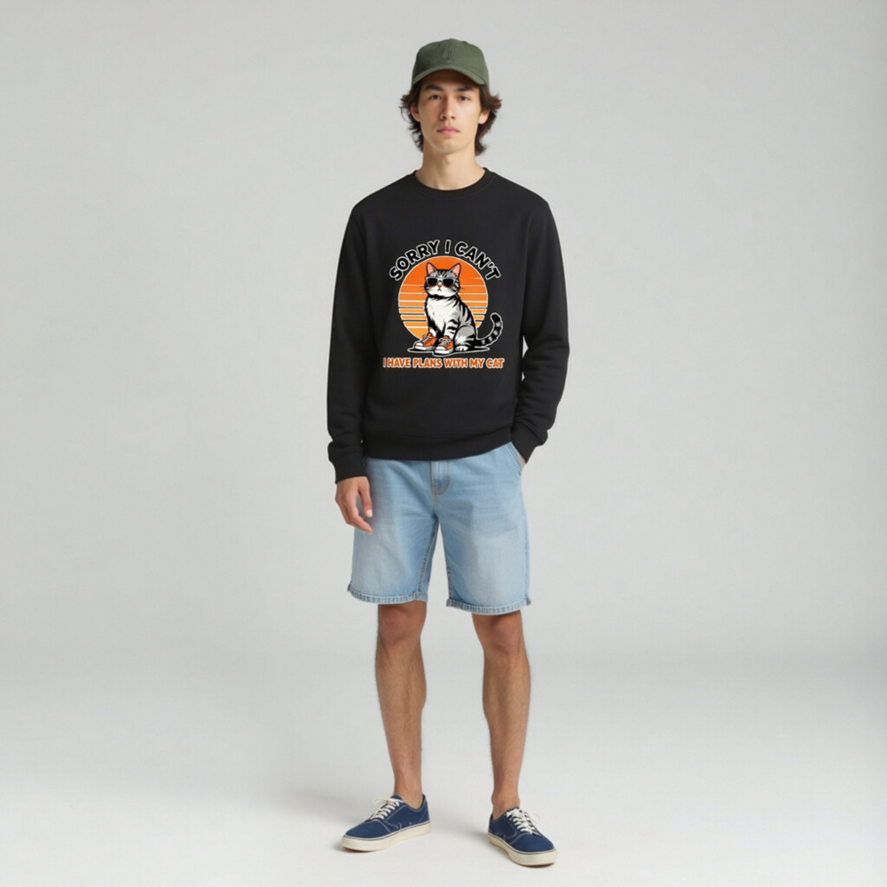 Unisex Organic Sweatshirt – ‘Sorry I Can’t, I Have Plans With My Cat’ Vintage Cat Design