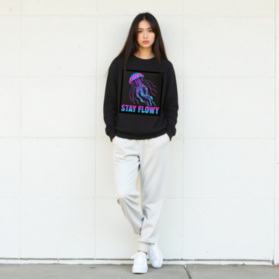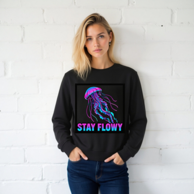 Wear the ‘Stay Flowy’ vibe with this unisex organic sweatshirt, featuring a vibrant neon jellyfish graphic that embodies fluidity and calm. Made from certified organic cotton for softness and sustainability—no synthetic blends, no harmful chemicals. Designed for comfort, everyday wear, and conscious style. Perfect for ocean lovers and wellness seekers alike.