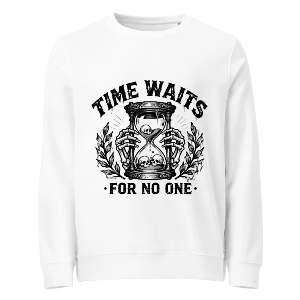 Unisex Organic Sweatshirt – Time Waits For No One Hourglass Skull Design