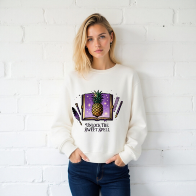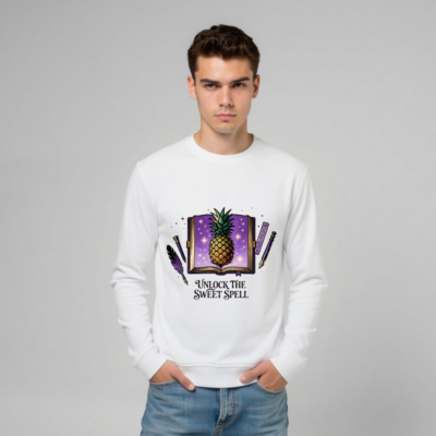Unisex Organic Sweatshirt | Unlock the Sweet Spell Pineapple Book Design