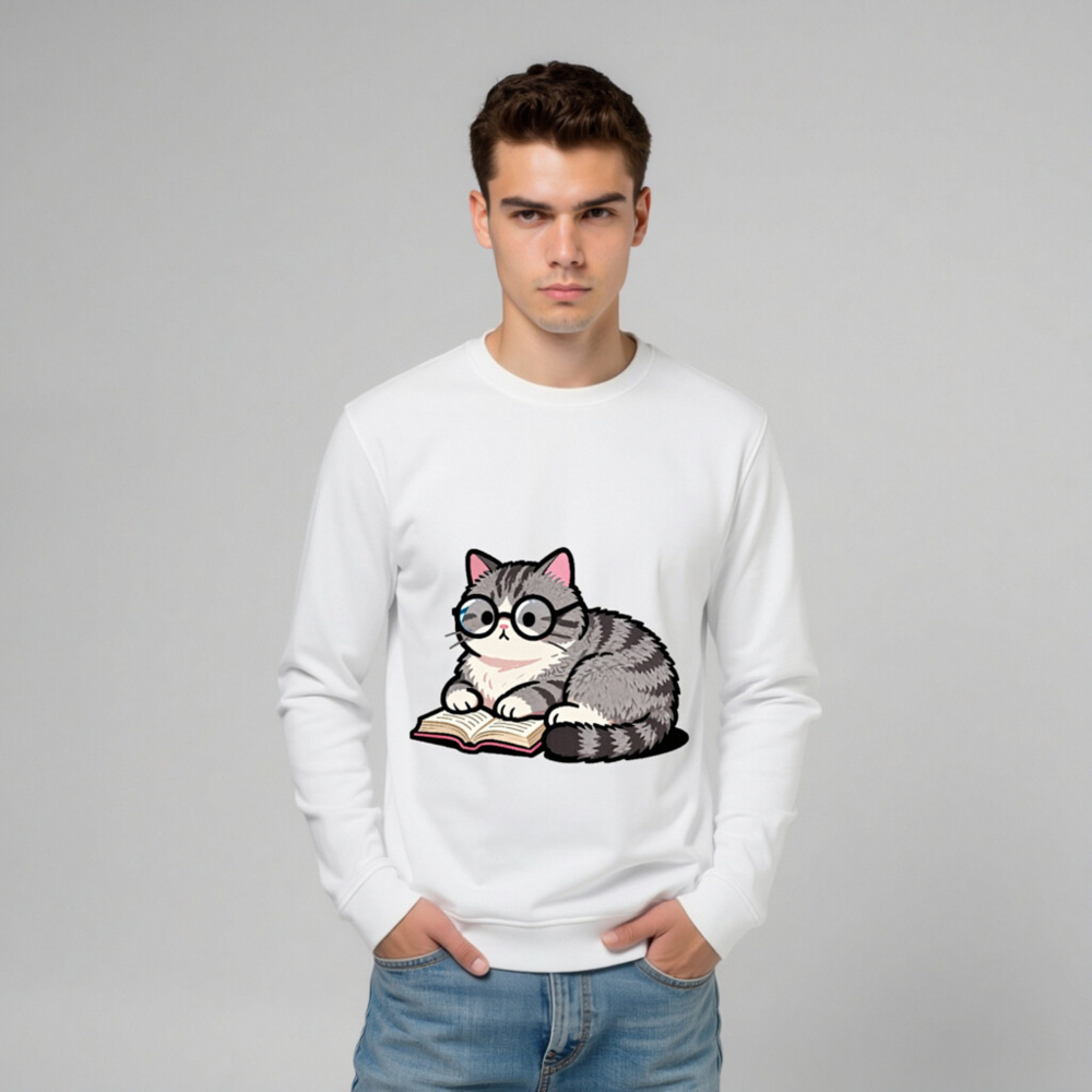 Unisex Organic Sweatshirt with Cute Cat Reading Book Design