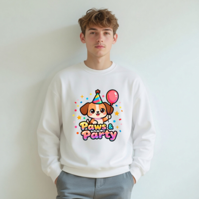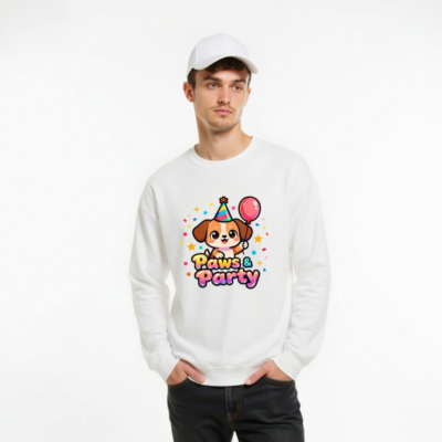 Unisex Paws & Party Dog Birthday Sweatshirt – Cute Crew Neck