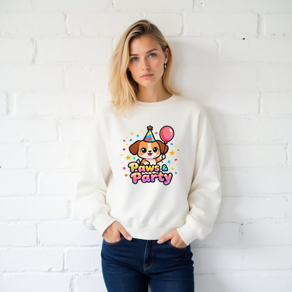 Unisex Paws & Party Dog Birthday Sweatshirt – Cute Crew Neck