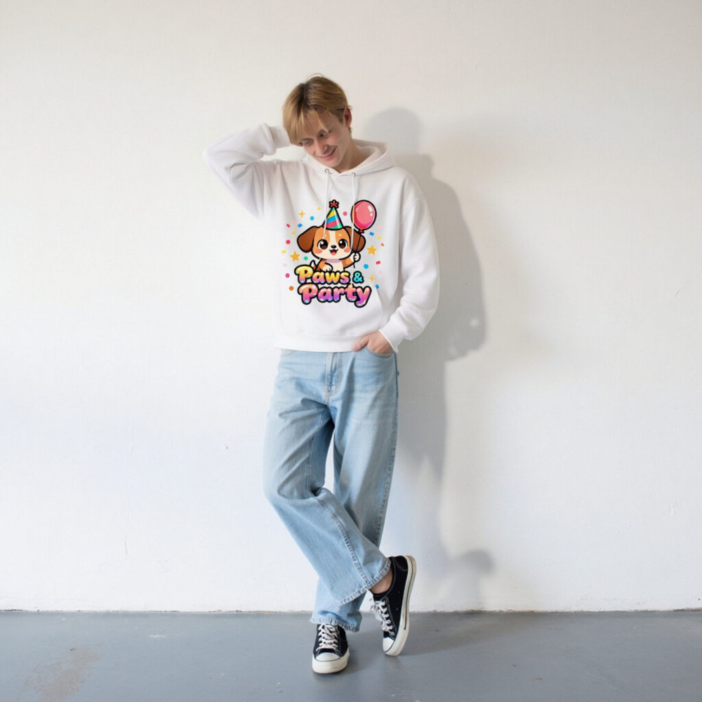 Unisex Paws & Party Hoodie – Eco-Friendly Essential Sweatshirt