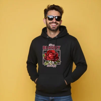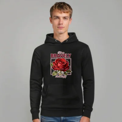 Unisex Premium Hoodie with ‘Bloom Bravely’ Rose Graphic